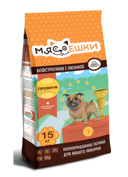 Сухой корм Мясоешки Бефстроганов с овсянкой обязательно понравится вашему четырехлапому другу. Еще бы, ведь в его состав входят мясо высшего качества, ростки алтайской пшеницы, овсяная мука, родниковая вода, а также необходимый набор витаминов и микроэлементов для отличного настроения и здоровья вашей собаки. Корм разработан и сбалансирован вместе с экспертами по изготовлению корма для животных компанией Petfood Specialities. Делая выбор в пользу Мясоешек Бефстроганов с овсянкой 15 кг, вы получаете уникальный сбалансированный состав премиум-качества в выгодной, экономичной упаковке. В 100 г продукта содержится 335 ккал. Ваш пес будет очень рад, поедая очередную порцию любимых вкусняшек, а здоровая шерсть, крепкие зубы, острое зрение и, конечно же, отменный аппетит порадует хозяина, а экономичной упаковке хватит надолго.