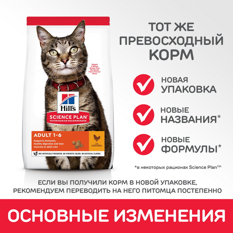 Корм из линейки Science Plan для взрослых кошек от 1 года до 7 лет на основе курицы