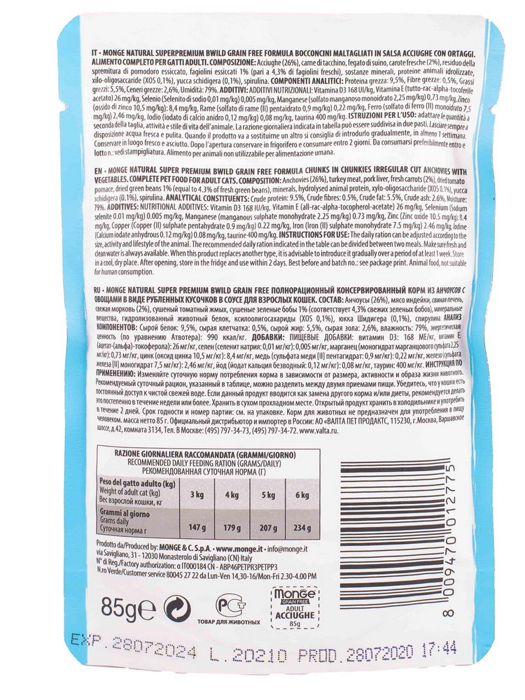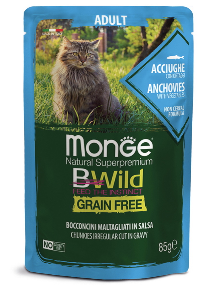 MONGE паучи для кошек Cat BWild (анчоусы), 85 г
